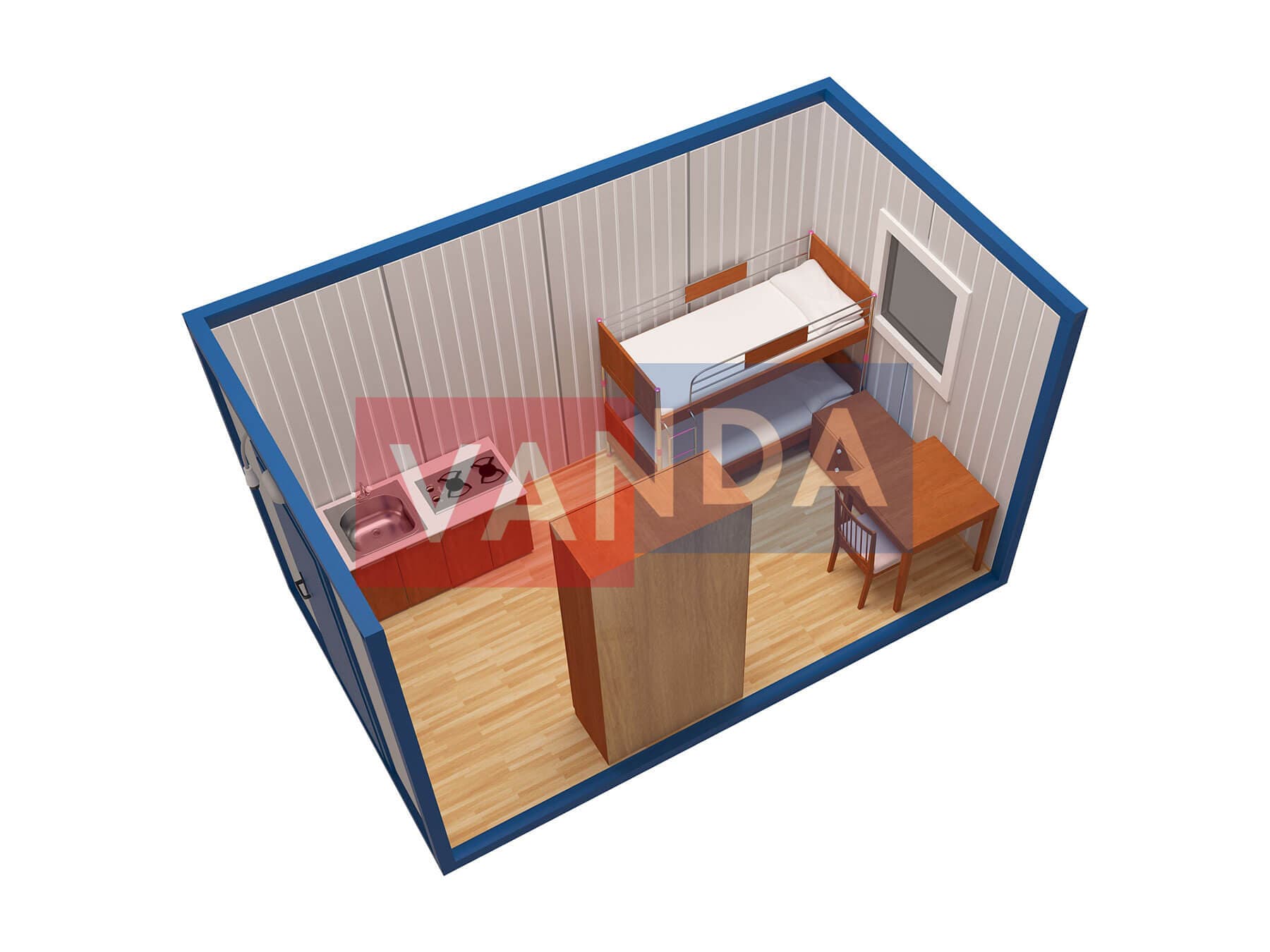 Металлическая бытовка с кухней в тамбуре 5,85 x 2,4 - Вагонка деревянная